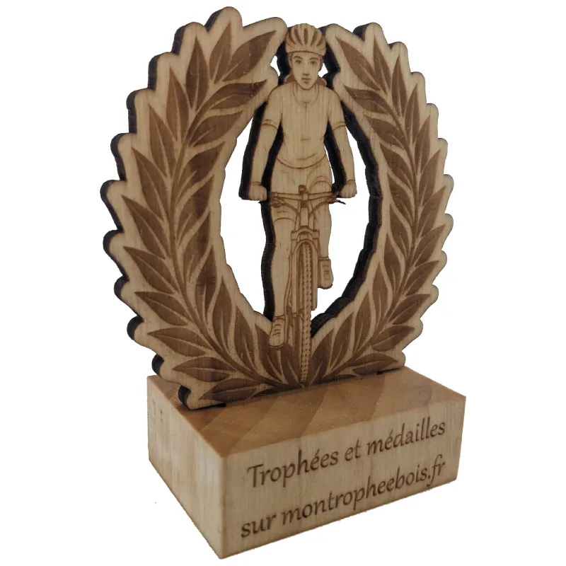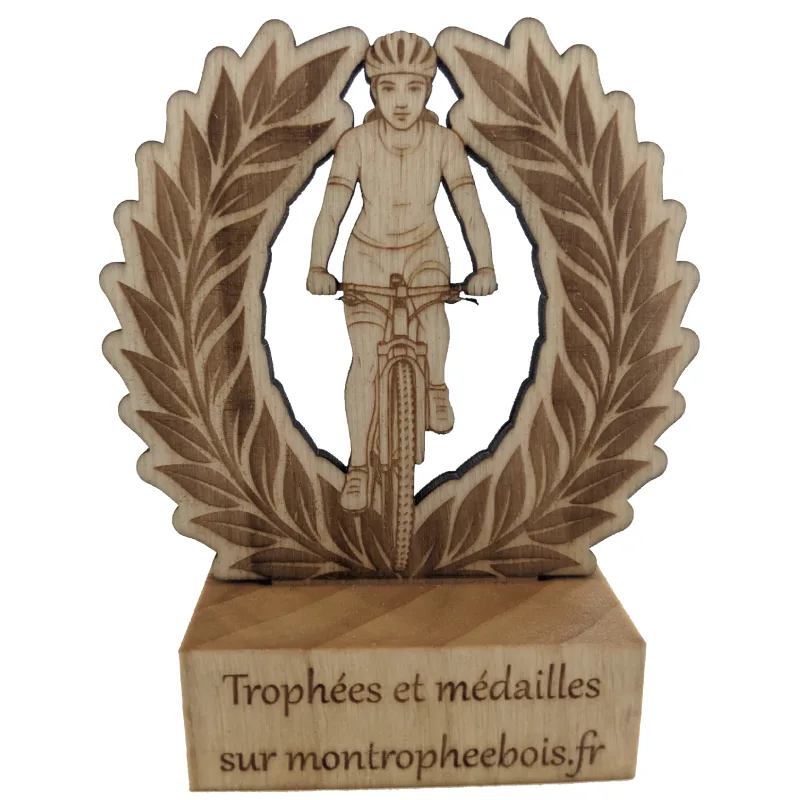 Mini-trophée de vélo en bois à personnaliser – femme et laurier